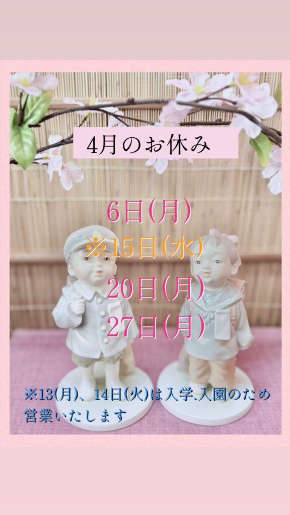 入学式に合わせて休みの変更がありますのでご確認ください。