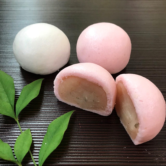 祝いの菓子、茶席の菓子として人気の高いおまんじゅうです。薯蕷(じょうよ)粉でしっとりもっちりの食感を楽しめる上品なお菓子です。