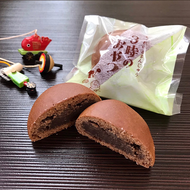 チョコレートあんをココア生地で包み焼き上げました。サクッとシットリが合わさった、名の通りおやつにぴったりなお菓子です。