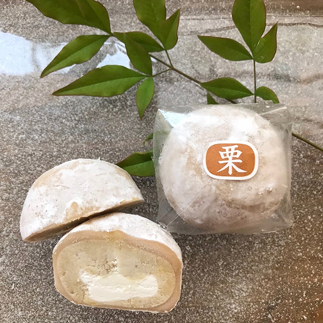 他の冷凍大福に比べちょっと高級な栗あんの大福です。栗あんのなめらかで味わい深さがクセになる根強い人気です。