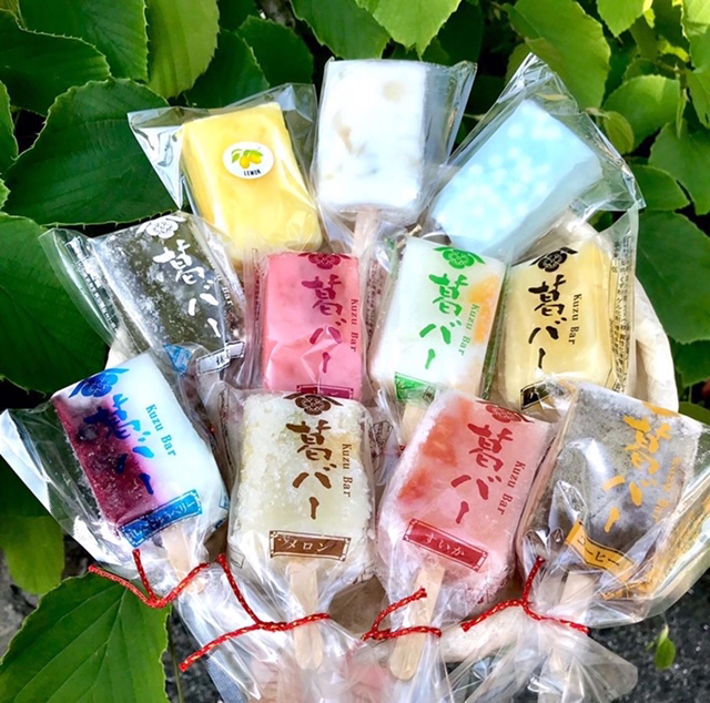 果肉入り葛餅を冷凍した棒付きのアイス。